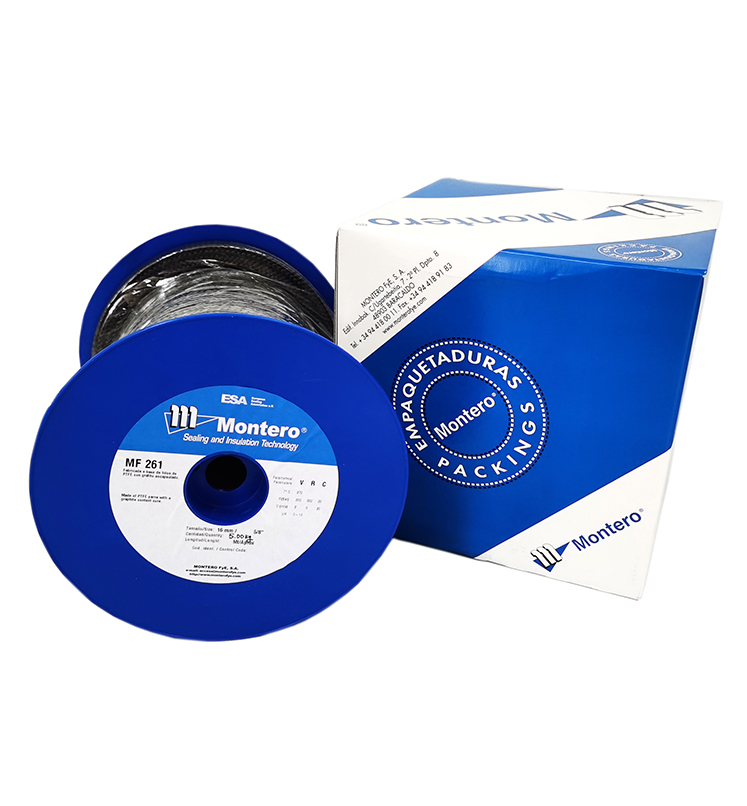 MF-261由含石墨的四氟線經(jīng)對角編織而成。石墨成份使盤根非常柔韌、易安裝及散熱快﹔四氟成份使其極抗化學(xué)腐蝕﹐幾乎適用于除強氧化物質(zhì)(如硝酸、硝基鹽酸及強堿)之外的任何介質(zhì)。此盤根不易硬化,且具有自潤滑性能﹐使其被廣泛應(yīng)用于各種旋轉(zhuǎn)設(shè)備的填料函及閥門。