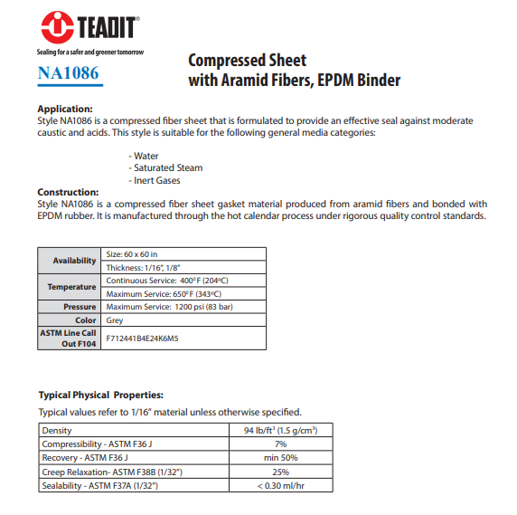 NA1086 由芳綸纖維制成,并與三元乙丙橡膠(EPDM)粘合在一起。