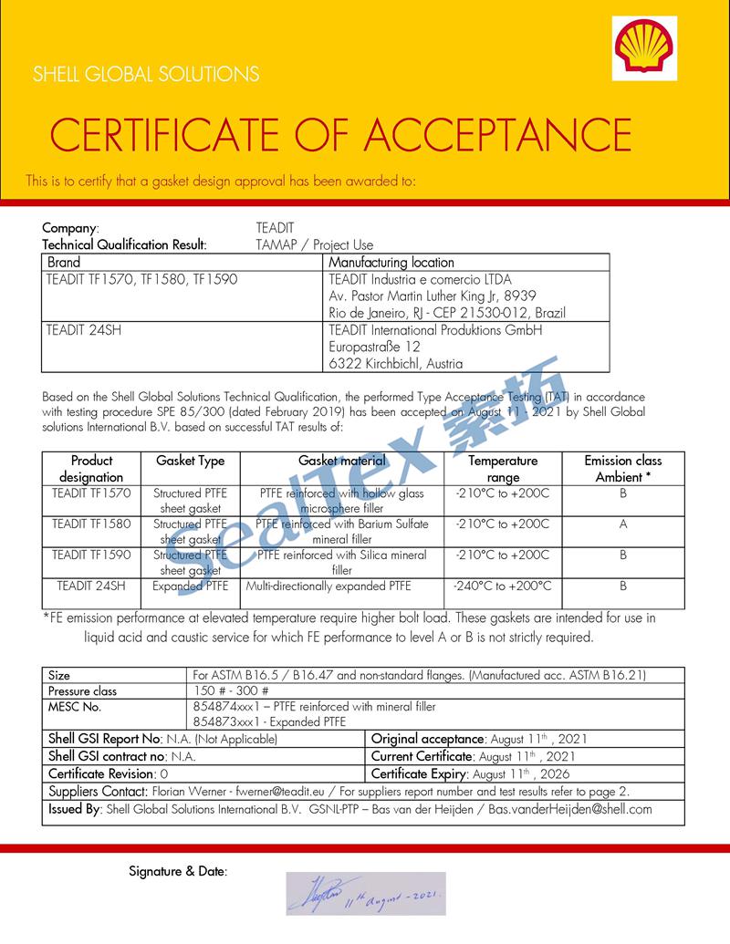 TEADIT密封材料獲得石化巨頭殼牌SHELL認(rèn)可 TEADIT/泰迪密封材料獲得石化巨頭殼牌SHELL認(rèn)可 涉及到的產(chǎn)品型號有:TEADIT TF1570, TF1580, TF1590,TEADIT 24SH 等 上一個 返回列表 下一個