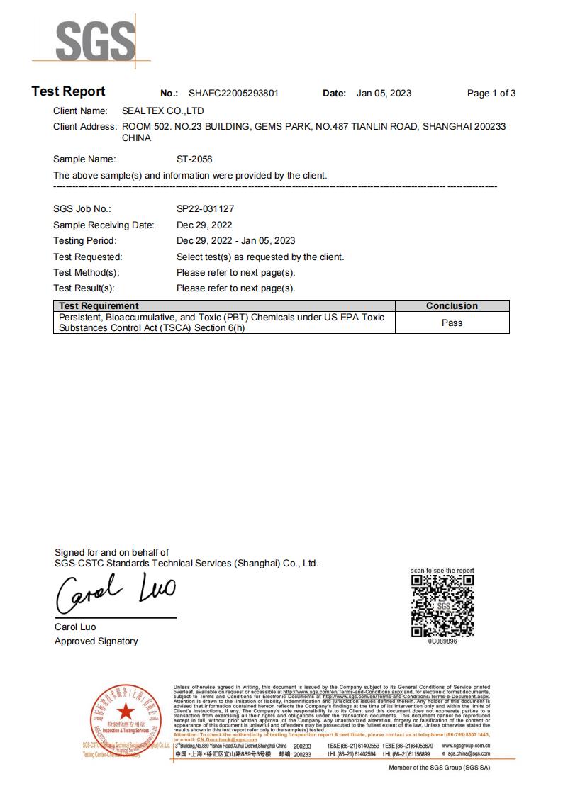 SealTex索拓 ST-2058通過RoHS和TSCA測(cè)試