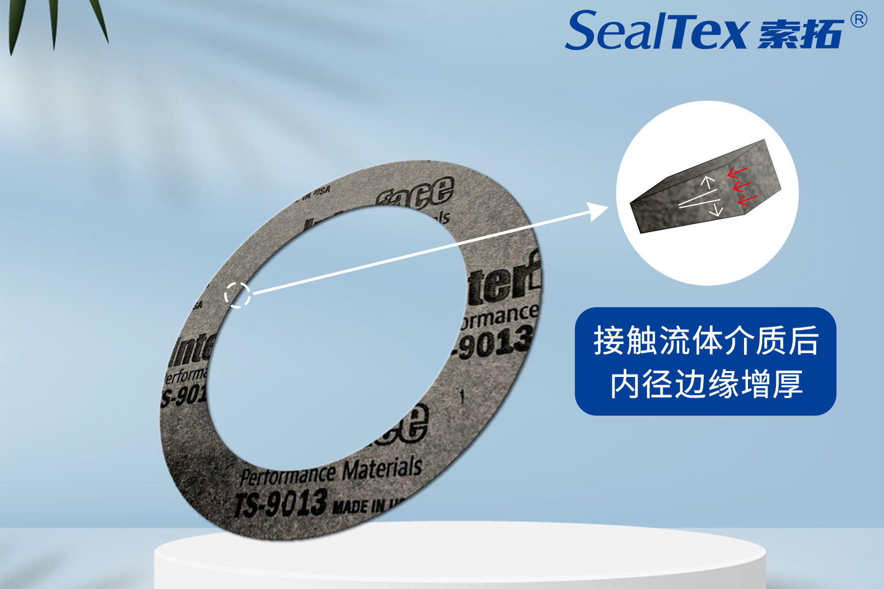 預(yù)硫化的SBR丁苯橡膠與纖維材料、耐高溫填料的復(fù)合結(jié)構(gòu),在接觸水、蒸汽或化學(xué)介質(zhì)后,材料輕微膨脹,填補(bǔ)法蘭面的微小缺陷,顯著降低泄漏風(fēng)險(xiǎn)。這種材料墊片厚度的增加只發(fā)生在接觸流體中的墊片內(nèi)邊緣。升溫后材料會(huì)被硫化因而減緩了進(jìn)一步膨脹,會(huì)產(chǎn)生全硫化現(xiàn)象加強(qiáng)了密封性能。